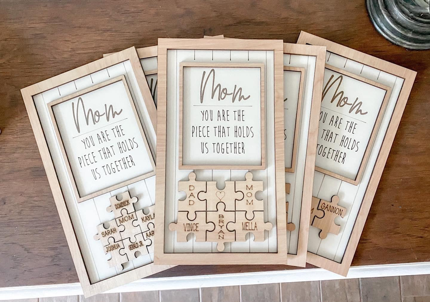 🧩 Celebrate the love and connection within your family with our Custom Puzzle Sign! Featuring the heartfelt message, "Mom, you are the pieces that hold us together," this unique wooden puzzle piece design is fully customizable. Change the top name to suit your loved one (e.g., Dad, Grandma, or a special friend) and include up to 15 puzzle pieces, each representing someone special in your life.